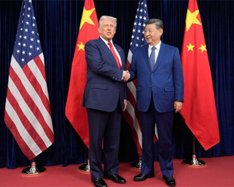 Anija u afrua 4km nga kryqëzori amerikan Leyte Gulf, i cili po shoqëron aeroplanmbajtësen George WH Bush, flamuri i flotës amerikane.