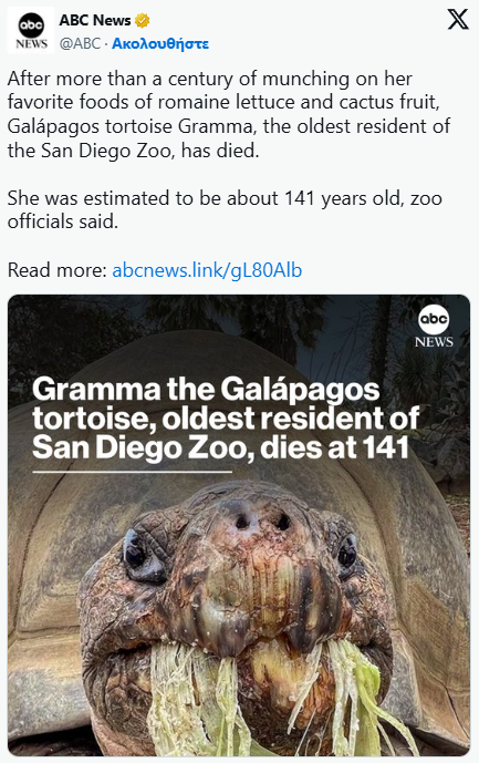 Emri i saj ishte “Gjyshja” dhe ishte një breshkë e Galapagosit, 141 vitet e ekzistencës jetuan 20 presidentë, dy luftëra botërore dhe dy pandemi.