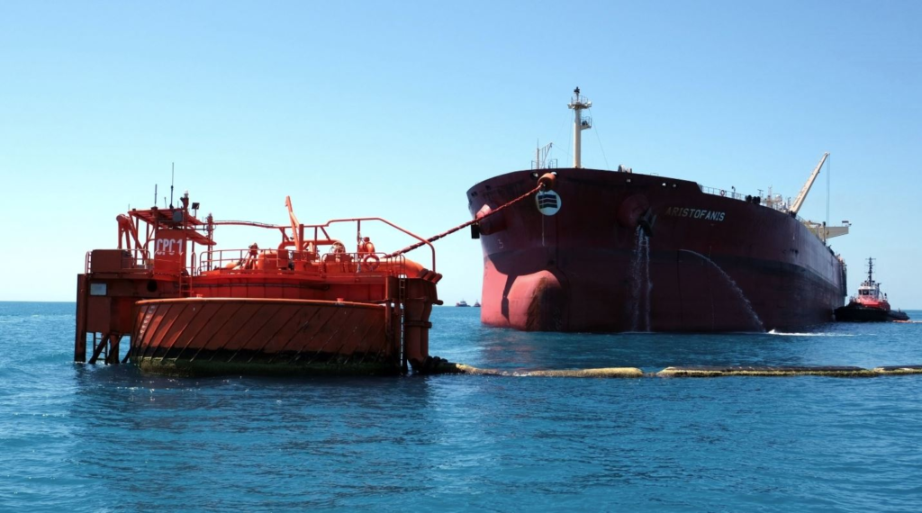 Anija Kairos, duke u kthyer nga porti indian i Paradipit për në Novorossiysk, u godit nga disa dronë detarë ukrainas.