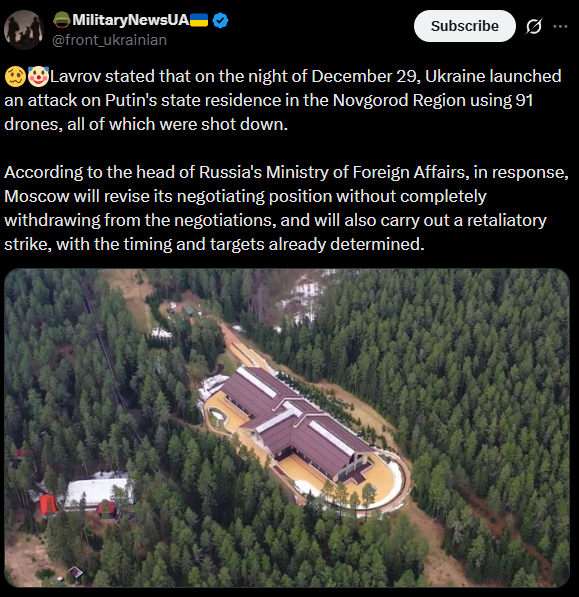 Termometri diplomatik po rritet ndërsa thrilleri i Ukrainës vazhdon dhe Ministri i Jashtëm Rus Sergei Lavrov thotë se Kievi nisi një sulm me dron në rezidencën e Vladimir Putinit në rajonin e Novgorodit, mbrëmë.