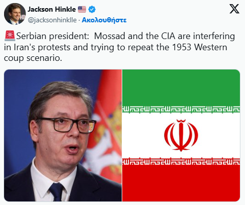 Presidenti serb Vuçiç po flet për atë që po ndodh në Iran, duke kujtuar grushtin e shtetit në vend në vitin 1953 dhe duke thënë se: “Mossad dhe CIA janë të përfshira në protesta siç bënë atëherë”!