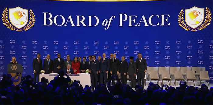 Pas deklaratave të tij, Trump u ul dhe ishte ndër të parët që nënshkroi kartën e themelimit të Këshillit të Paqes.