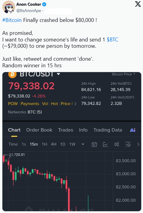 Bitcoin bie ndjeshëm prej të shtunës pasdite, duke rënë nën 80,000 dollarë dhe duke arritur nivelin më të ulët që nga prilli 2025, mes një shitjeje më të gjerë të kriptomonedhave, ndërsa asetet dixhitale humbasin miliarda. Rënia erdhi mes likuiditetit të ulët dhe interesit të kufizuar për blerje, duke përkeqësuar një rënie që ka zhdukur më shumë se 30% të vlerës së kriptomonedhës më të madhe në botë, sipas Bloomberg.