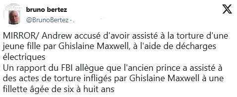 Akuza, e cila dyshohet se erdhi nga një informacion anonim, thotë gjithashtu se burra të tjerë panë torturën e vajzës së bashku me Andrew.