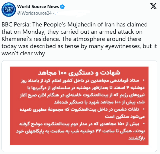 NewsX nuk ishte në gjendje të verifikonte në mënyrë të pavarur pretendimin e MEK-ut në lidhje me sulmin e supozuar ndaj rezidencës së Khameneit.
