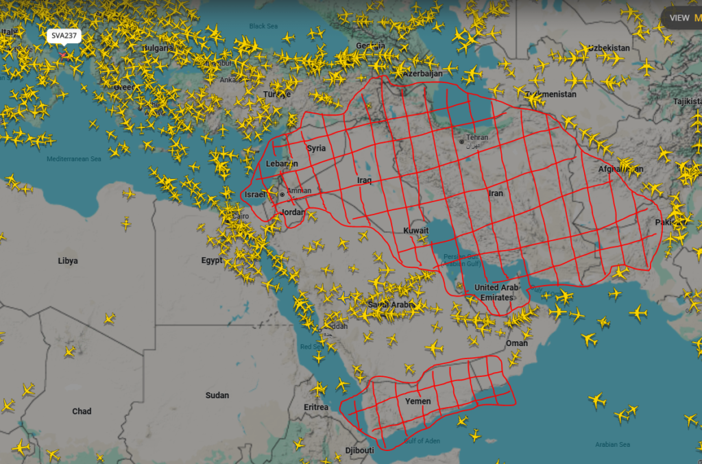 Hapësira ajrrore e mbyllur në Lindjen e Mesme.