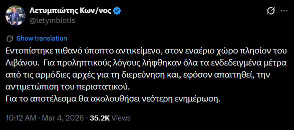 Zyrtari qipriot sqaroi, mes një postimi, se “hapësira ajrore e Republikës së Qipros nuk u mbyll në asnjë moment. Si pjesë e procedurave të përcaktuara, dy fluturimeve iu kërkua të qëndronin në pritje për një periudhë të shkurtër kohore, me qëllim sigurimin e hapësirës së nevojshme operative. Piloti i njërit prej dy fluturimeve zgjodhi të kthehej në Athinë, ndërsa fluturimi i dytë u ul normalisht pak më vonë. Hapësira ajrore vazhdon të funksionojë normalisht”.