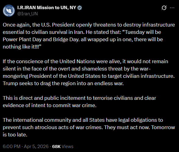 Vërehet se në Teheran ky është një paralajmërim i fundit për kaosin e afërt që do të pasojë në kontekstin e shkatërrimive të infrastrukturës dhe konfliktit me palën amerikano-izraelite, si dhe të ardhmen e panjohur të Iranit.