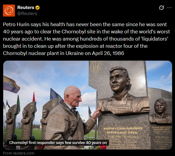 Dyzet vite pas aksidentit bërthamor të Çernobilit, Petro Khurin, një nga njerëzit që morën pjesë në punën e rimëkëmbjes, përshkruan sesi shëndeti i tij nuk u përmirësua kurrë plotësisht, pas ekspozimit ndaj rrezatimit pas shpërthimit në reaktorin 4, më 26 prill 1986.