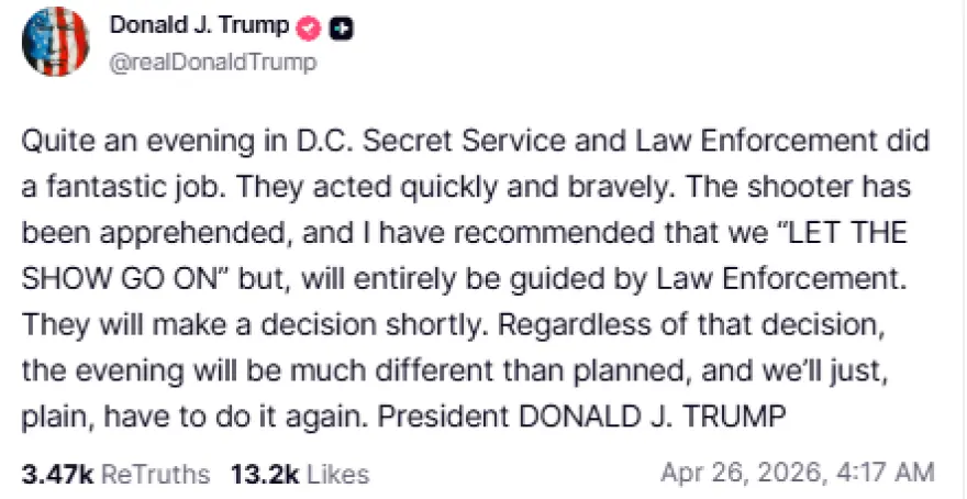 Menjëherë pas incidentit, Donald Trump shkroi në një postim në Truth Social: